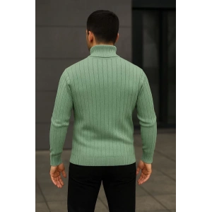 Erkek Balıkcı Yaka Bağazlı Triko Kazak Pamuklu Kalın Fitilli Dokuma, Regular Fit Uzun Kollu Kışlık Model - Mint Yeşili
