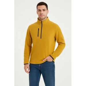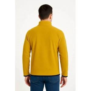 Erkek Polar Kazak – Dik Yaka, Yarım Fermuarlı, Fermuarlı Göğüs Cepli, Siyah Biyeli, Kışlık Rahat Regular Fit Günlük Model - Sarı