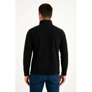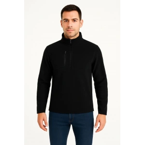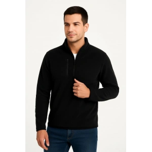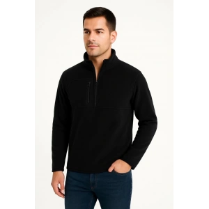 Erkek Polar Kazak – Dik Yaka, Yarım Fermuarlı, Fermuarlı Göğüs Cepli, Siyah Biyeli, Kışlık Rahat Regular Fit Günlük Model - Siyah