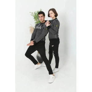 Unisex Yarım Boğazlı Baskılı Dokuma Triko - Füme