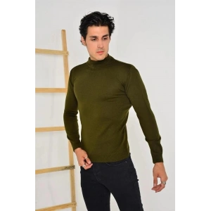 Erkek Tam Balıkçı Yaka Düz Renk Kazak - Yeşil