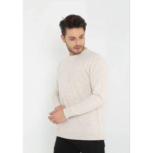 Unisex Uzun Kol Biskilet Yaka Dokuma Triko - Bej