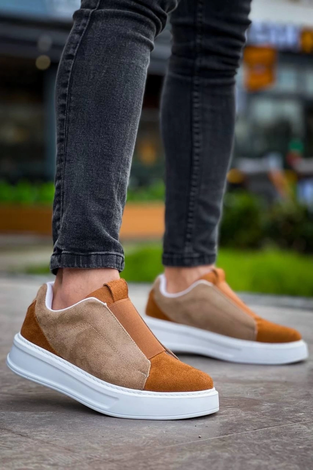 • KB-007 Kuback Vizon Taba Yüksek Taban Tek Bant Bağcıksız Günlük Erkek Ayakkabı
