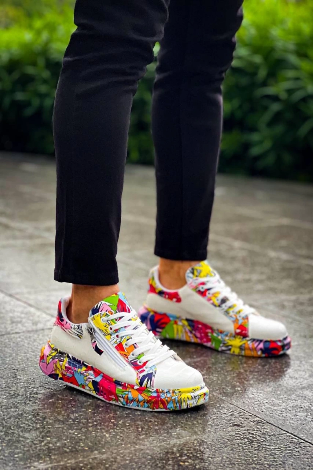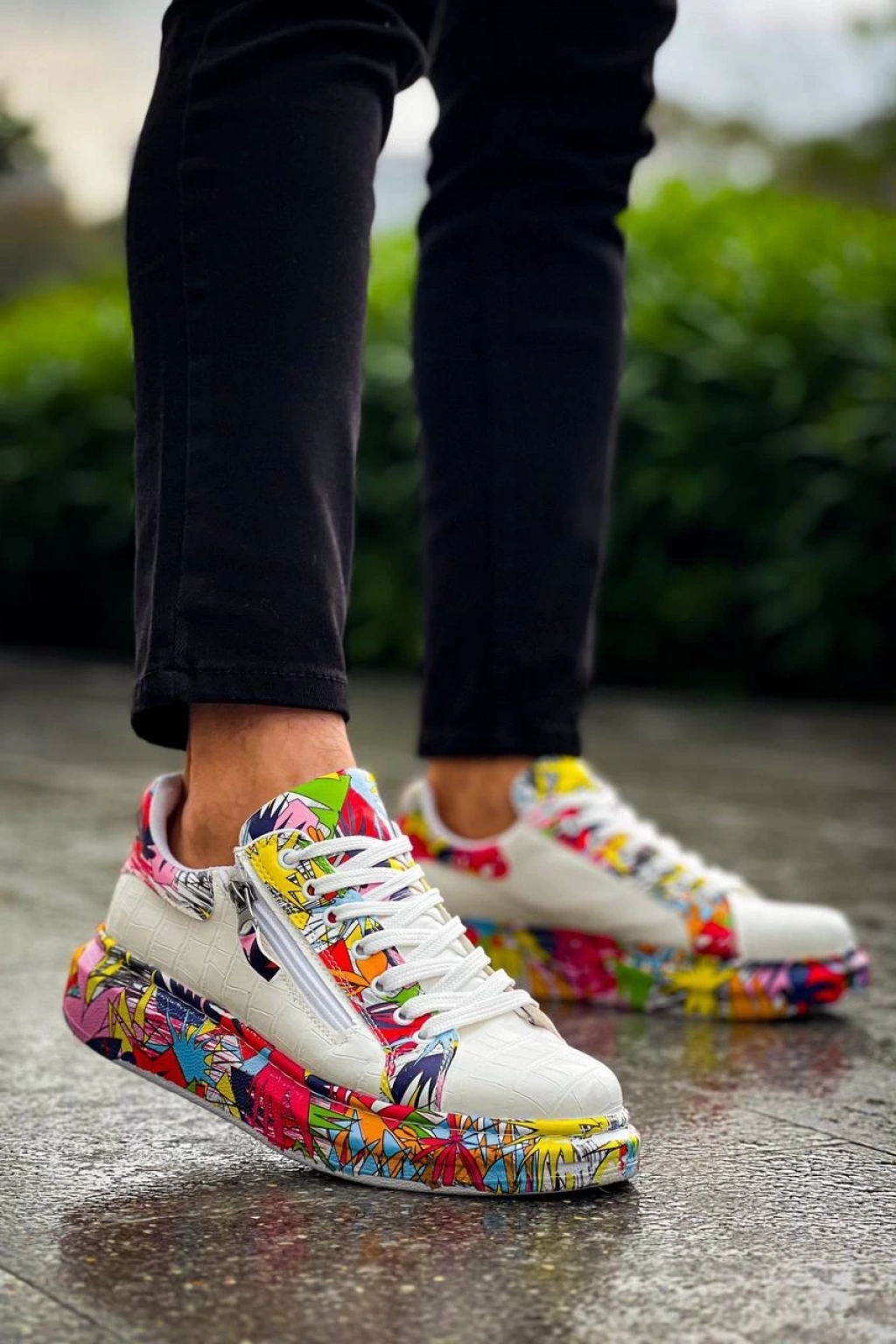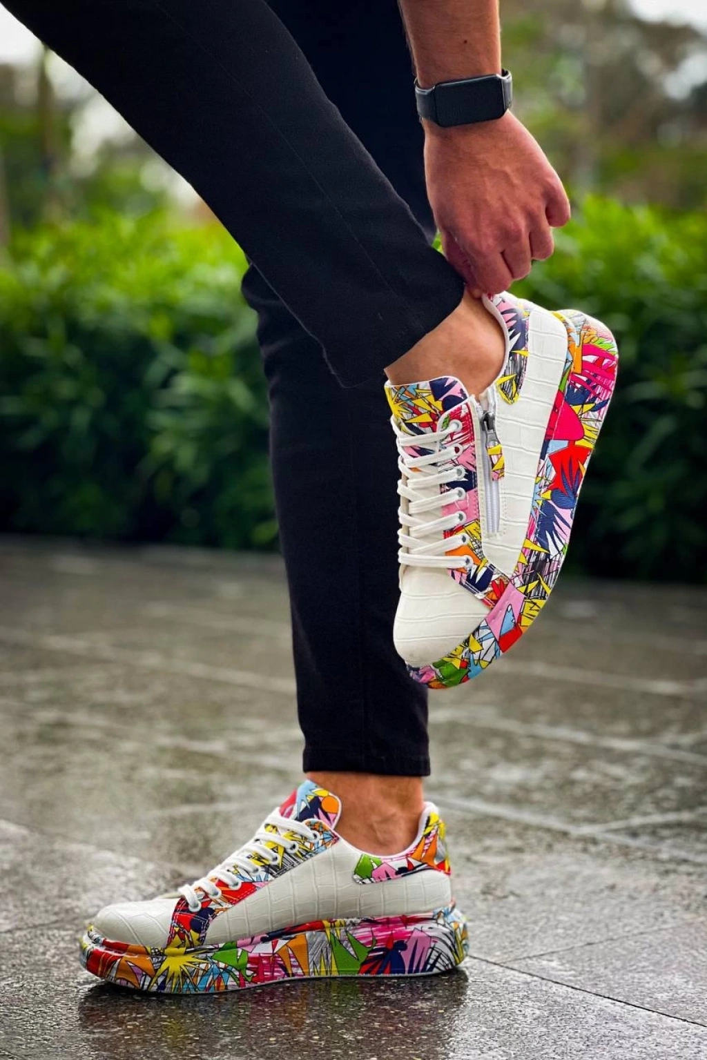 KB-02 Kuback Bağcıklı Crocodile Beyaz Kırmızı Günlük Erkek Ayakkabı