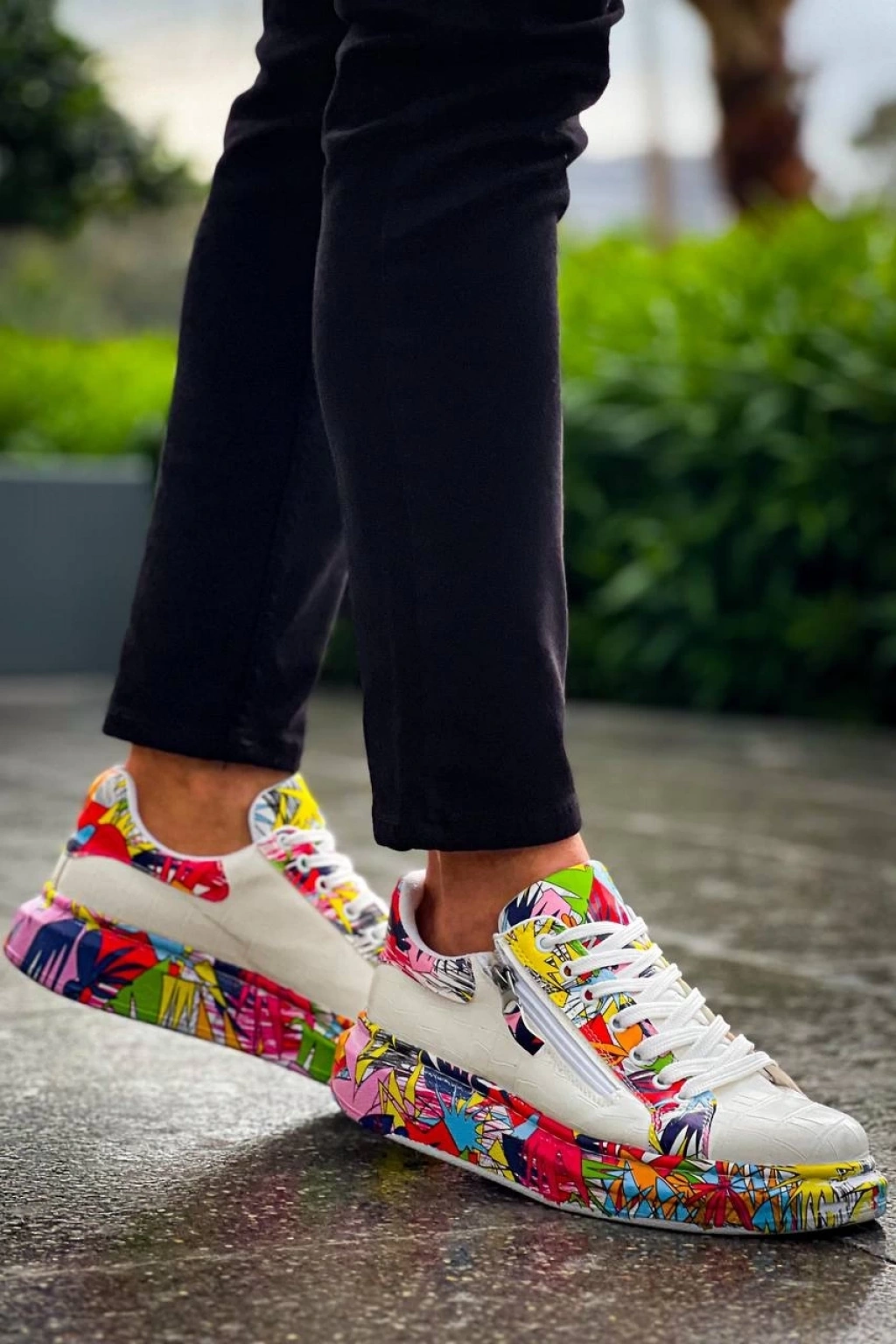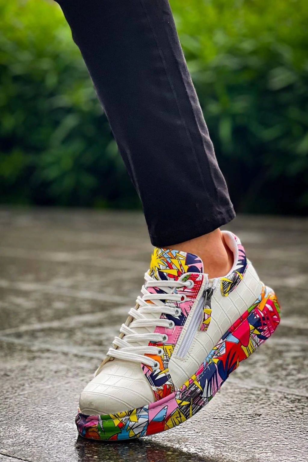 • KB-02 Kuback Bağcıklı Crocodile Beyaz Kırmızı Günlük Erkek Ayakkabı