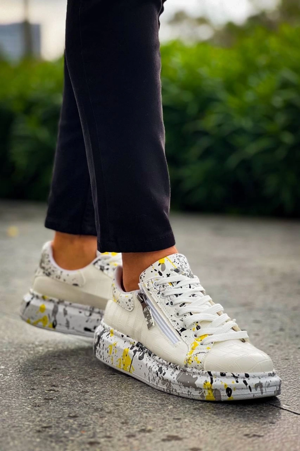 KB-02 Kuback Bağcıklı Crocodile Beyaz Sarı Günlük Erkek Ayakkabı
