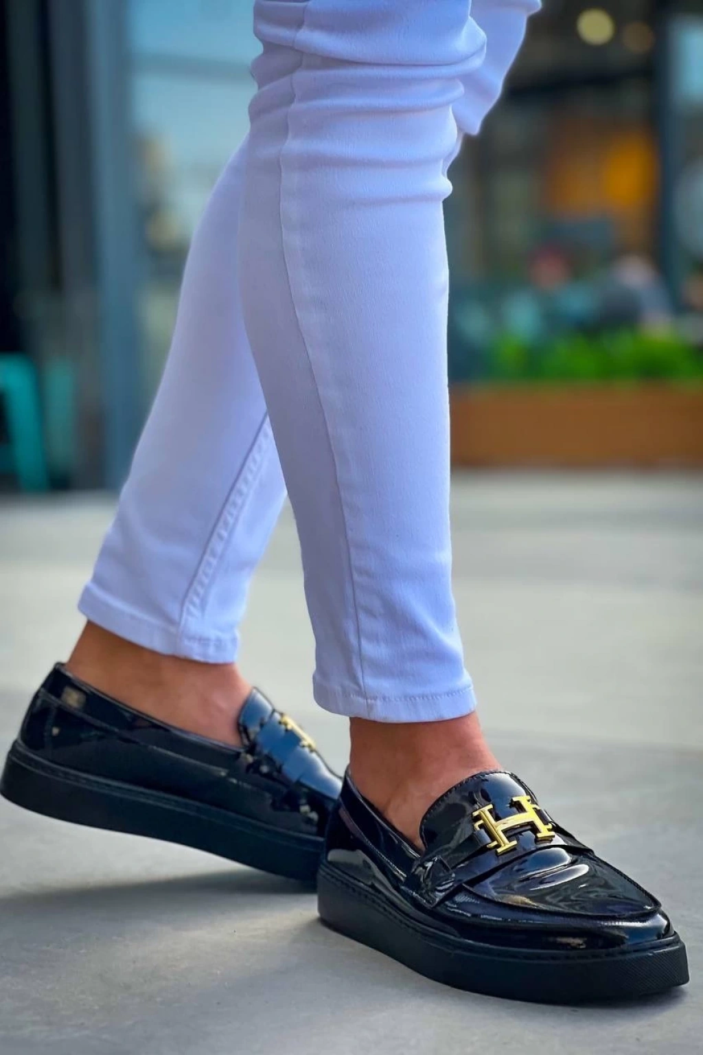 • KB-027 Kuback Bağcıksız Kömür Rugan H Günlük Erkek Ayakkabı