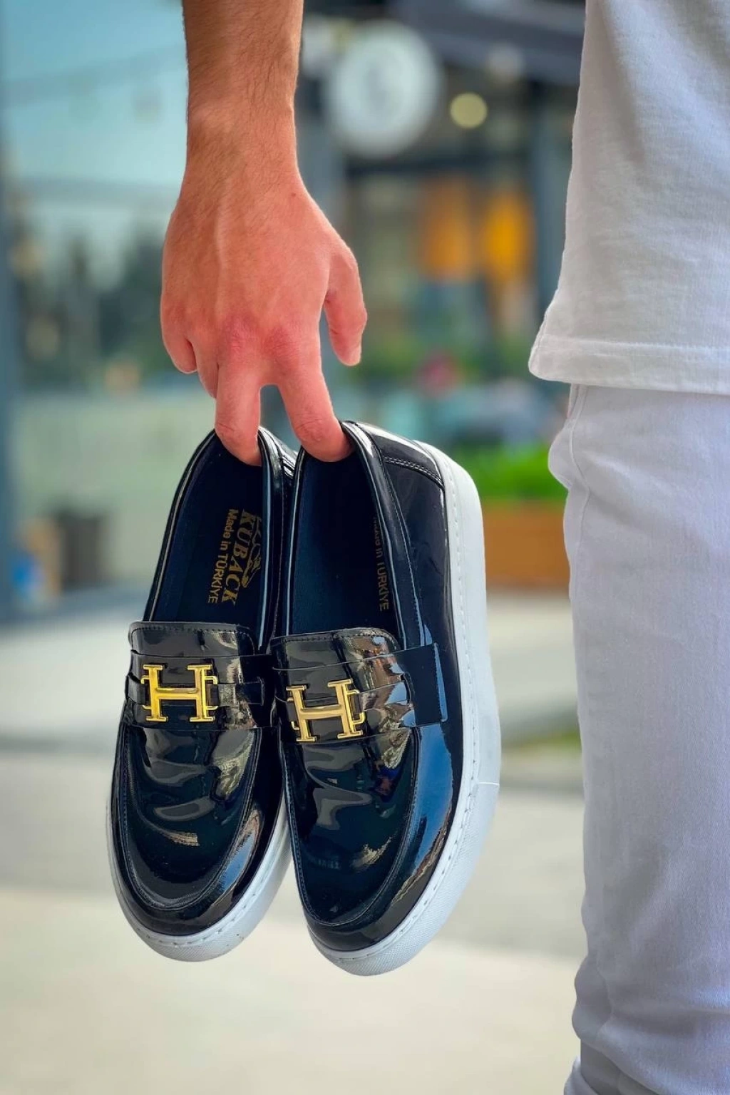 • KB-027 Kuback Bağcıksız Siyah Rugan H Günlük Erkek Ayakkabı