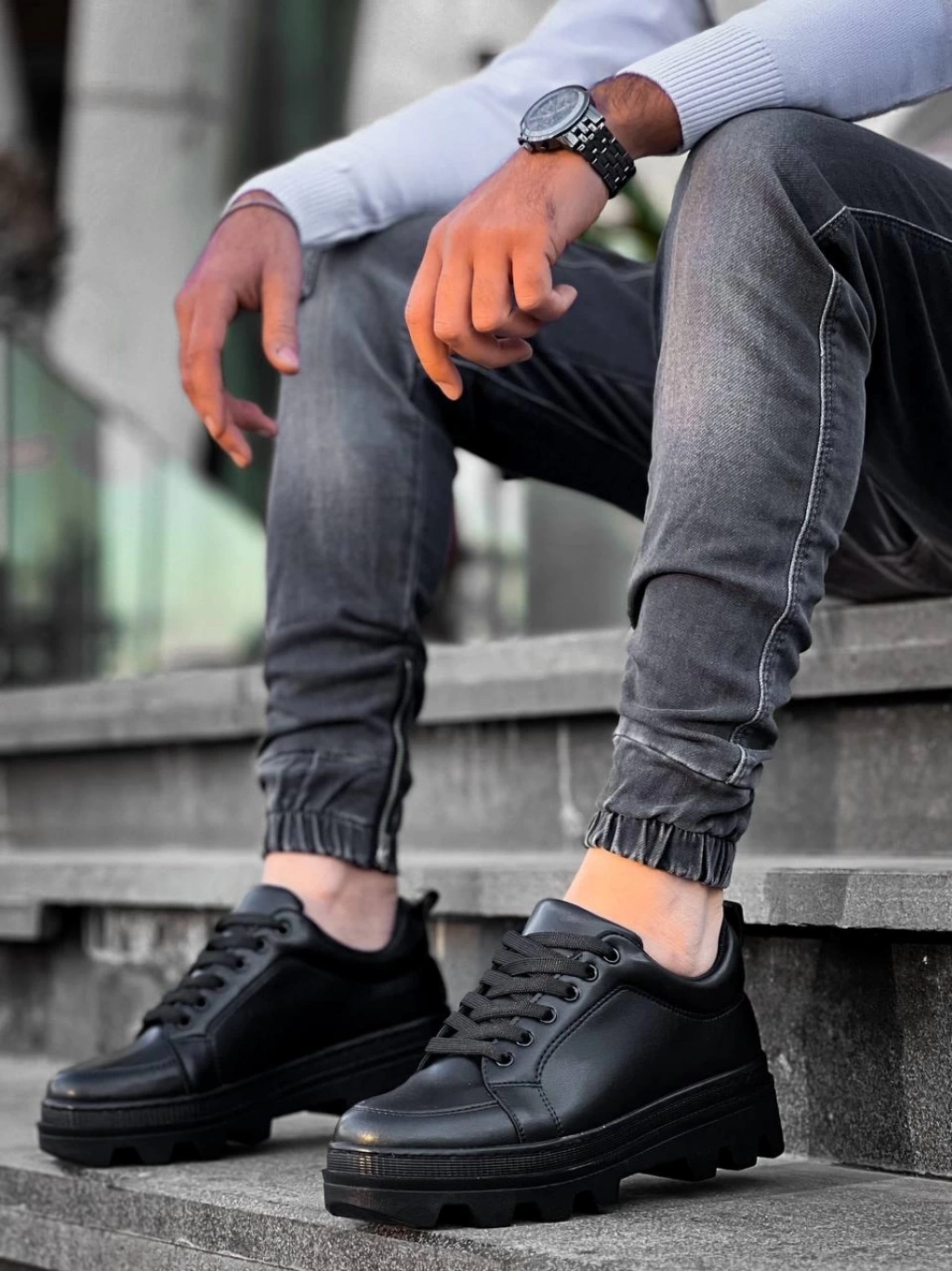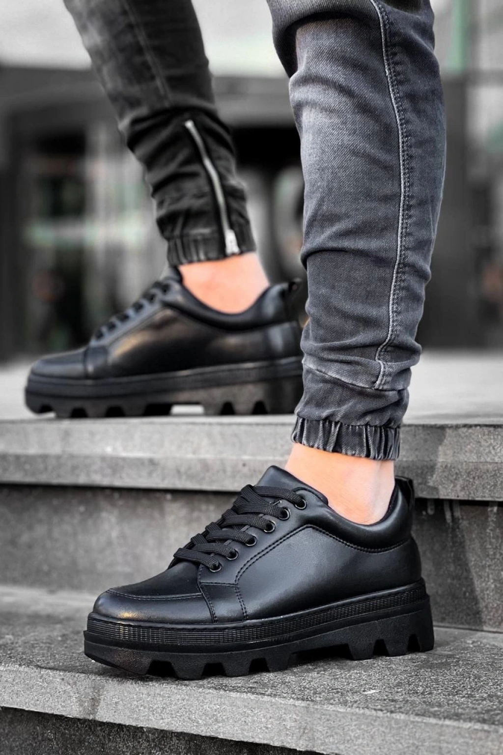 • KB-056 Kuback Siyah Cilt Siyah Yüksek Taban Günlük Spor Ayakkabı