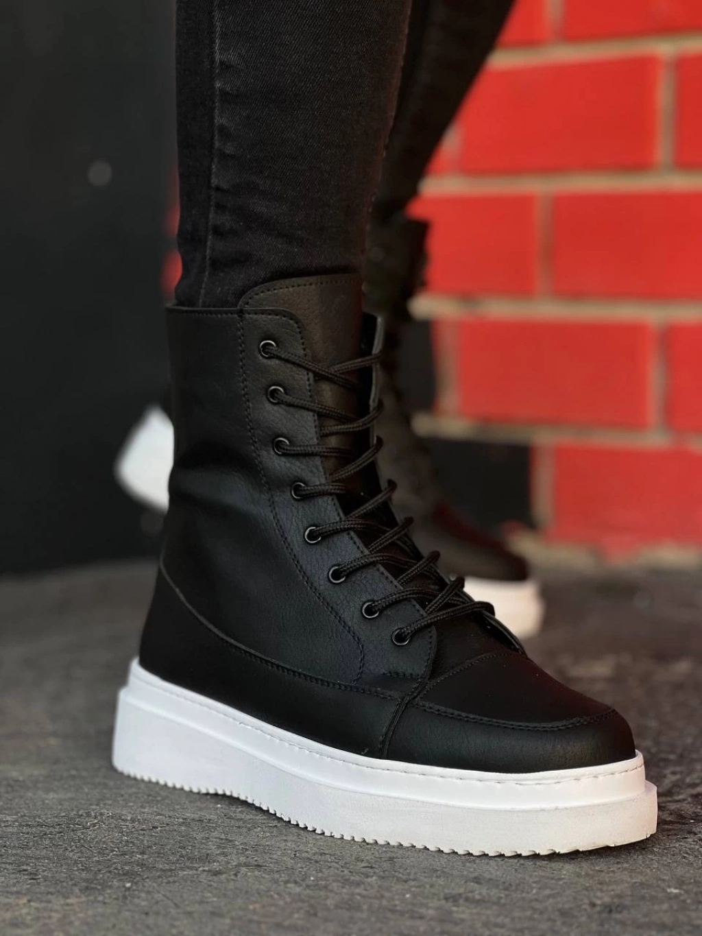 KB-0991 Kuback Siyah Cilt Yüksek Taban Bağcıklı Postal Bot