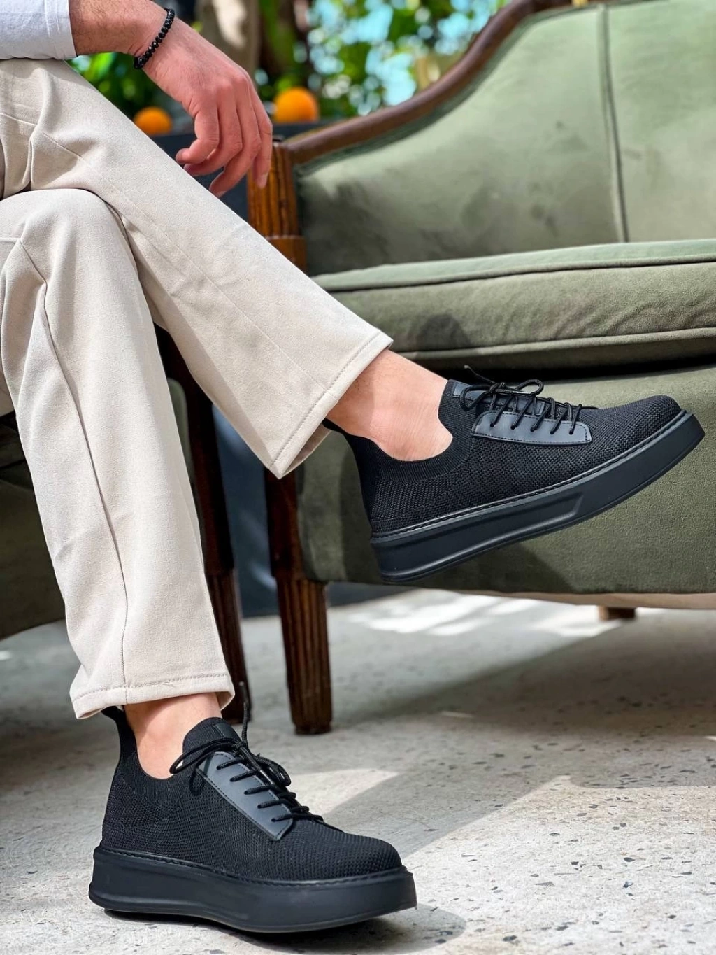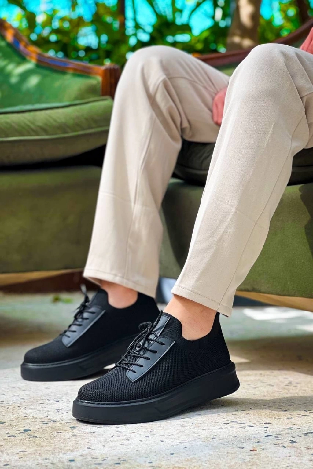 KB-116 Kuback Siyah Siyah Taban Bağcıklı Triko Günlük Erkek Ayakkabı