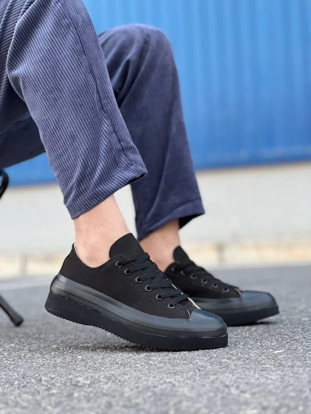 Kb-cx-3 Kuback Kısa Siyah Keten Siyah Yüksek Taban Spor Ayakkabı