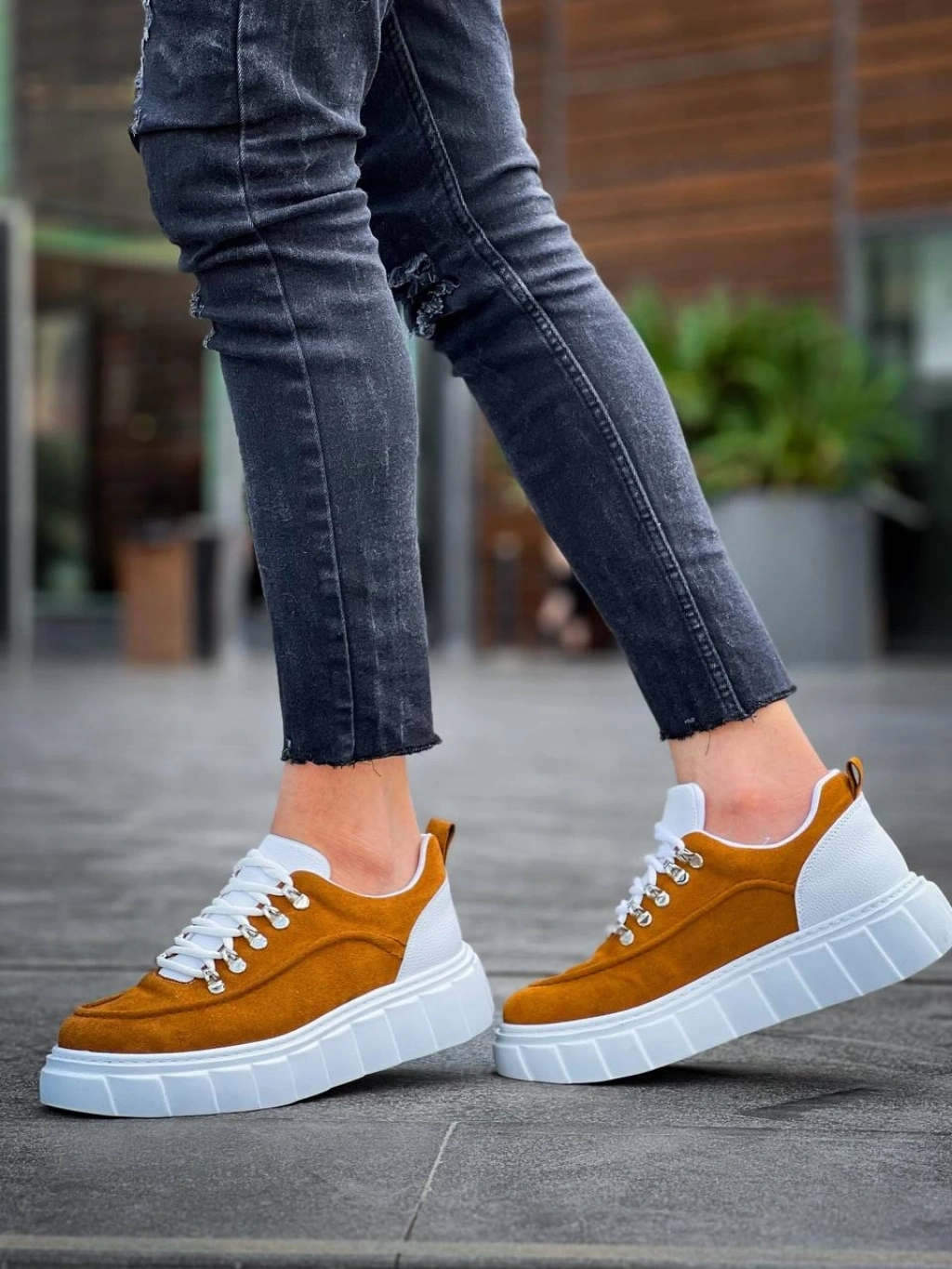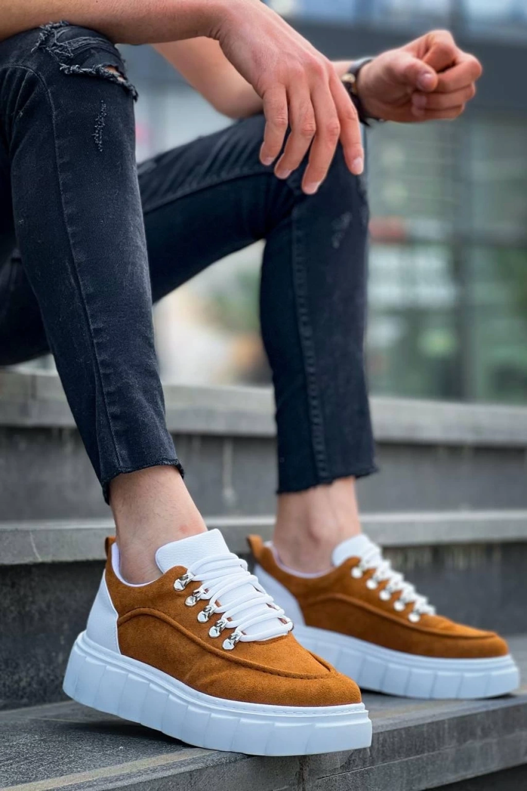 • KB-X10 Kuback Taba Süet Beyaz Yüksek Taban Günlük Spor Ayakkabı