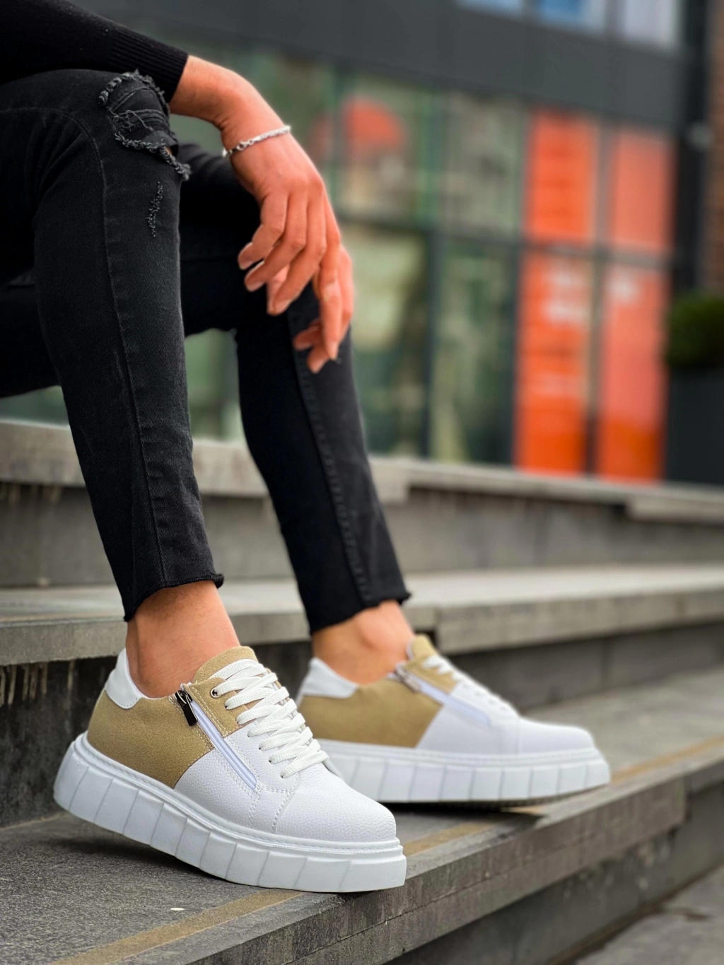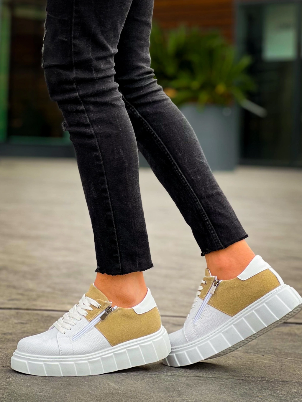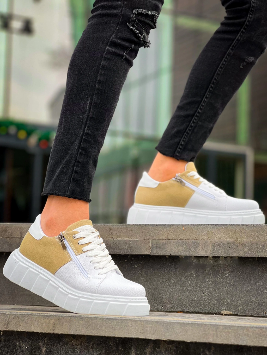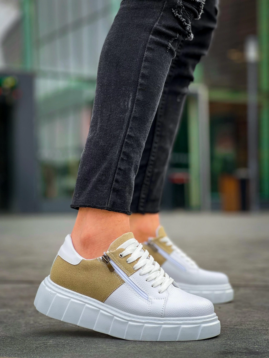 • KB-X155 Kuback Beyaz Cilt Bej Süet Detaylı Beyaz Yüksek Taban Günlük Spor Ayakkabı