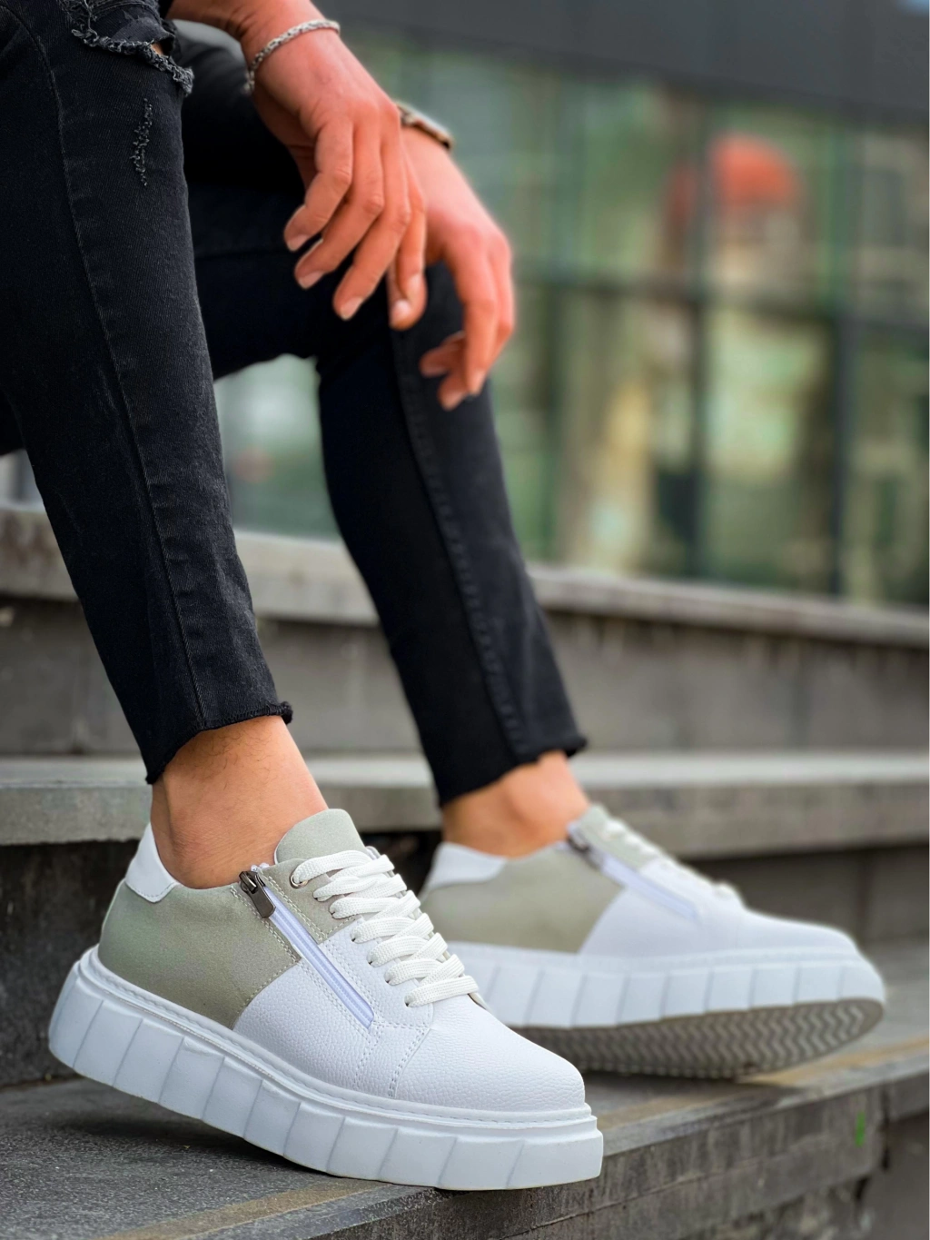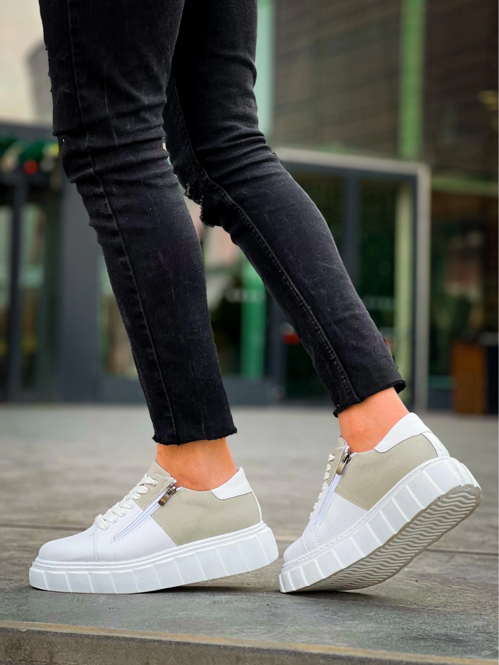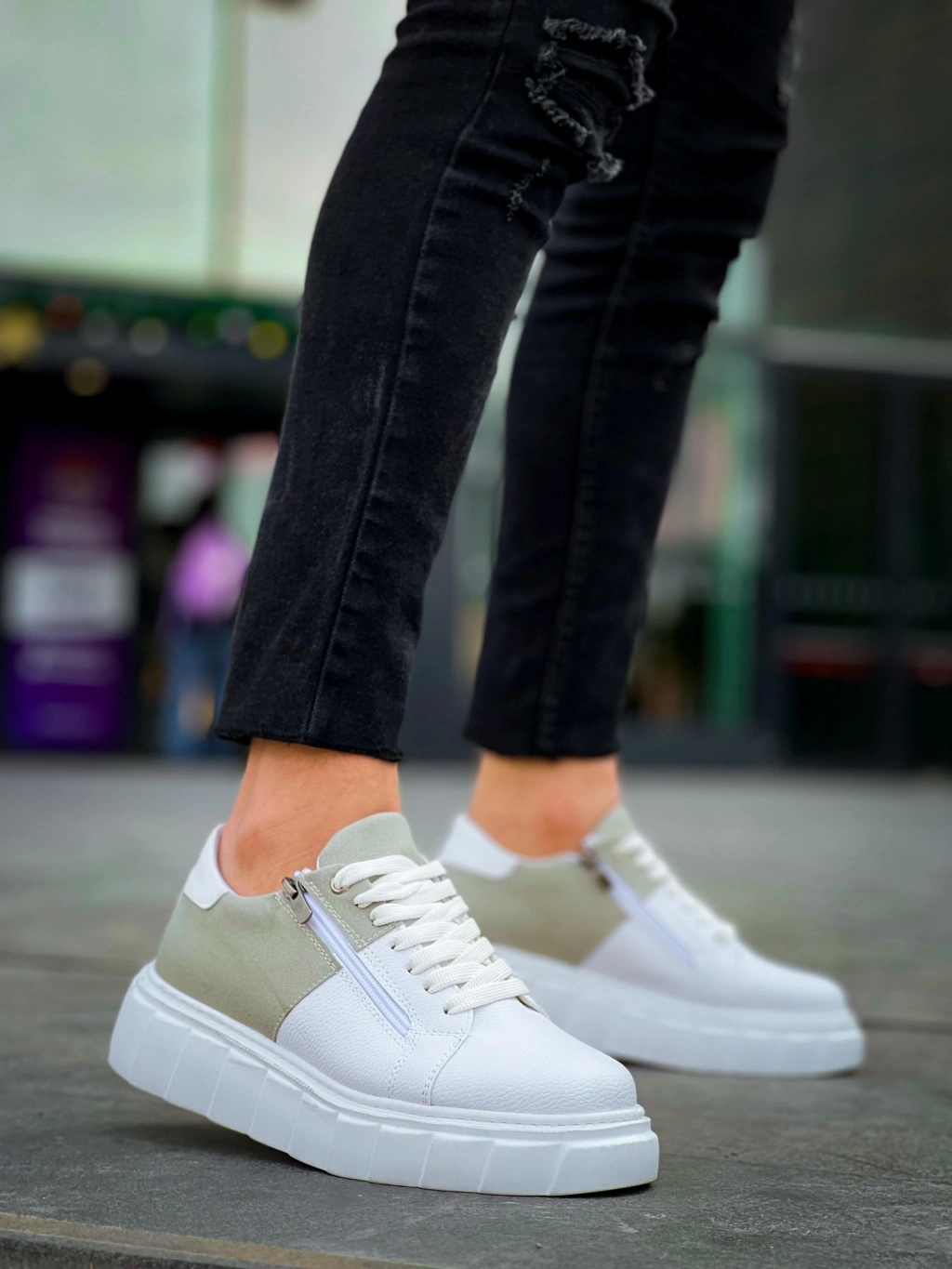 • KB-X155 Kuback Beyaz Cilt Gri Süet Detaylı Beyaz Yüksek Taban Günlük Spor Ayakkabı