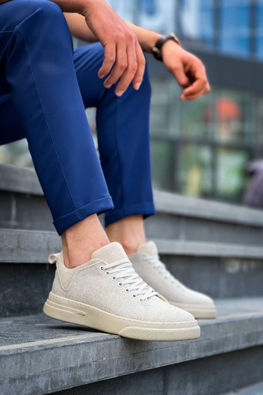 • KB-X204 Kuback Bej Keten Bej Yüksek Taban Günlük Erkek Spor Ayakkabı