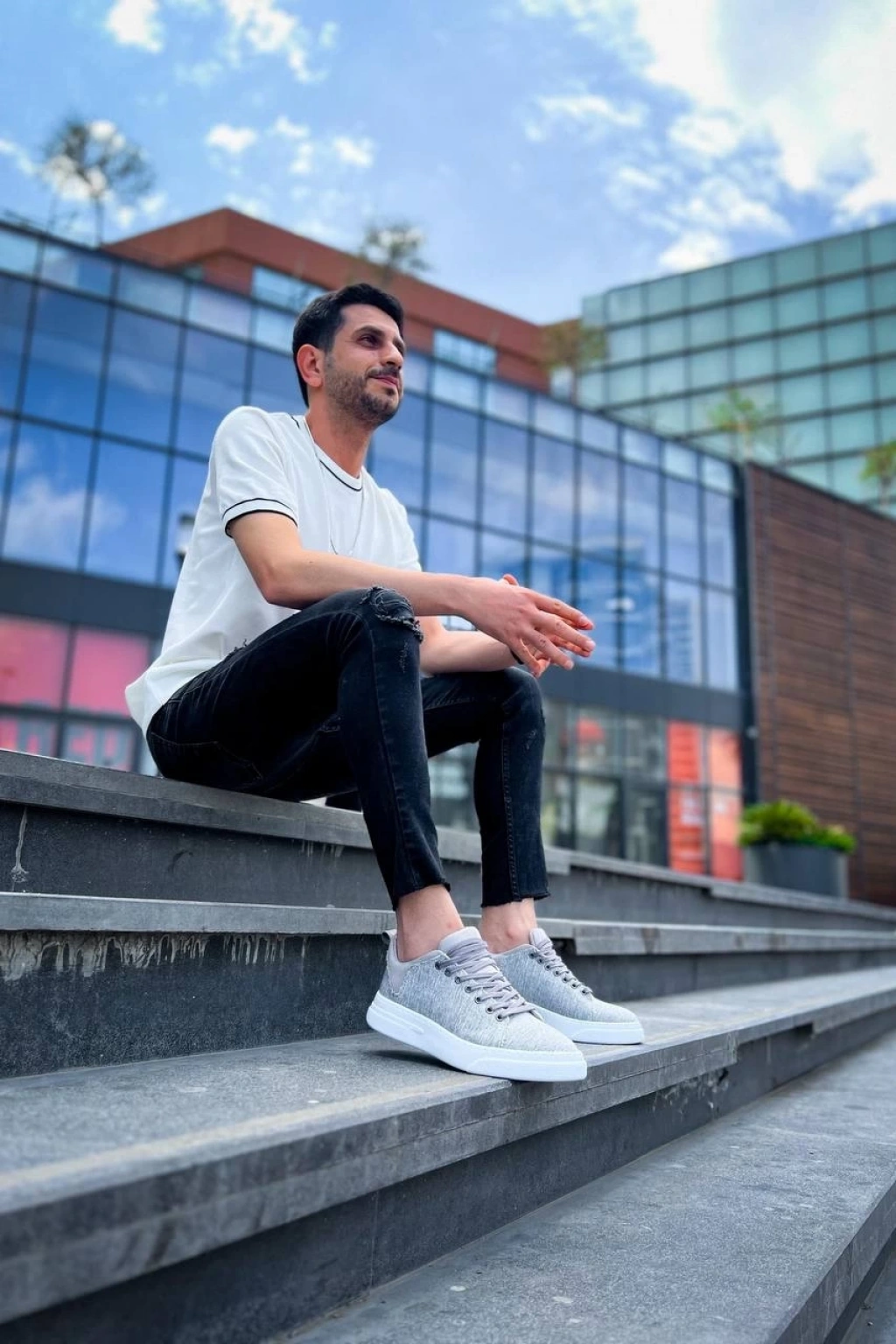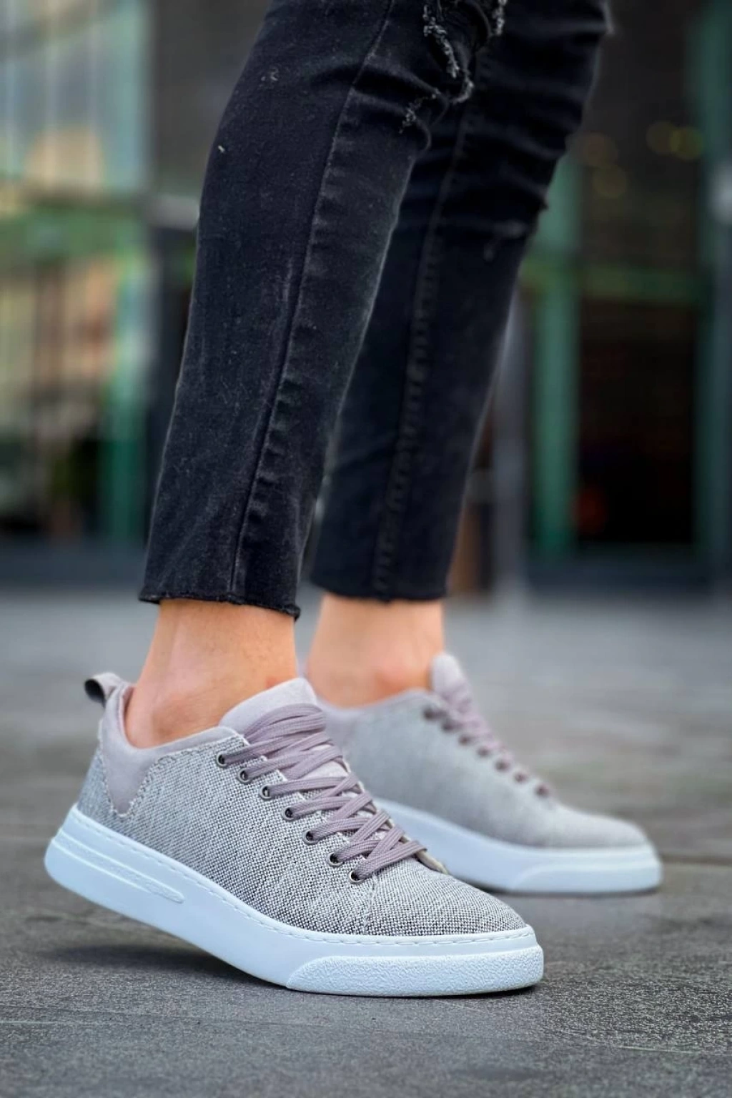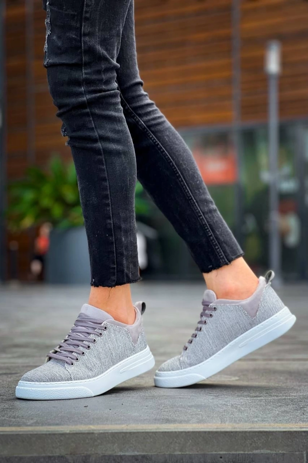 • KB-X204 Kuback Gri Keten Beyaz Yüksek Taban Günlük Erkek Spor Ayakkabı
