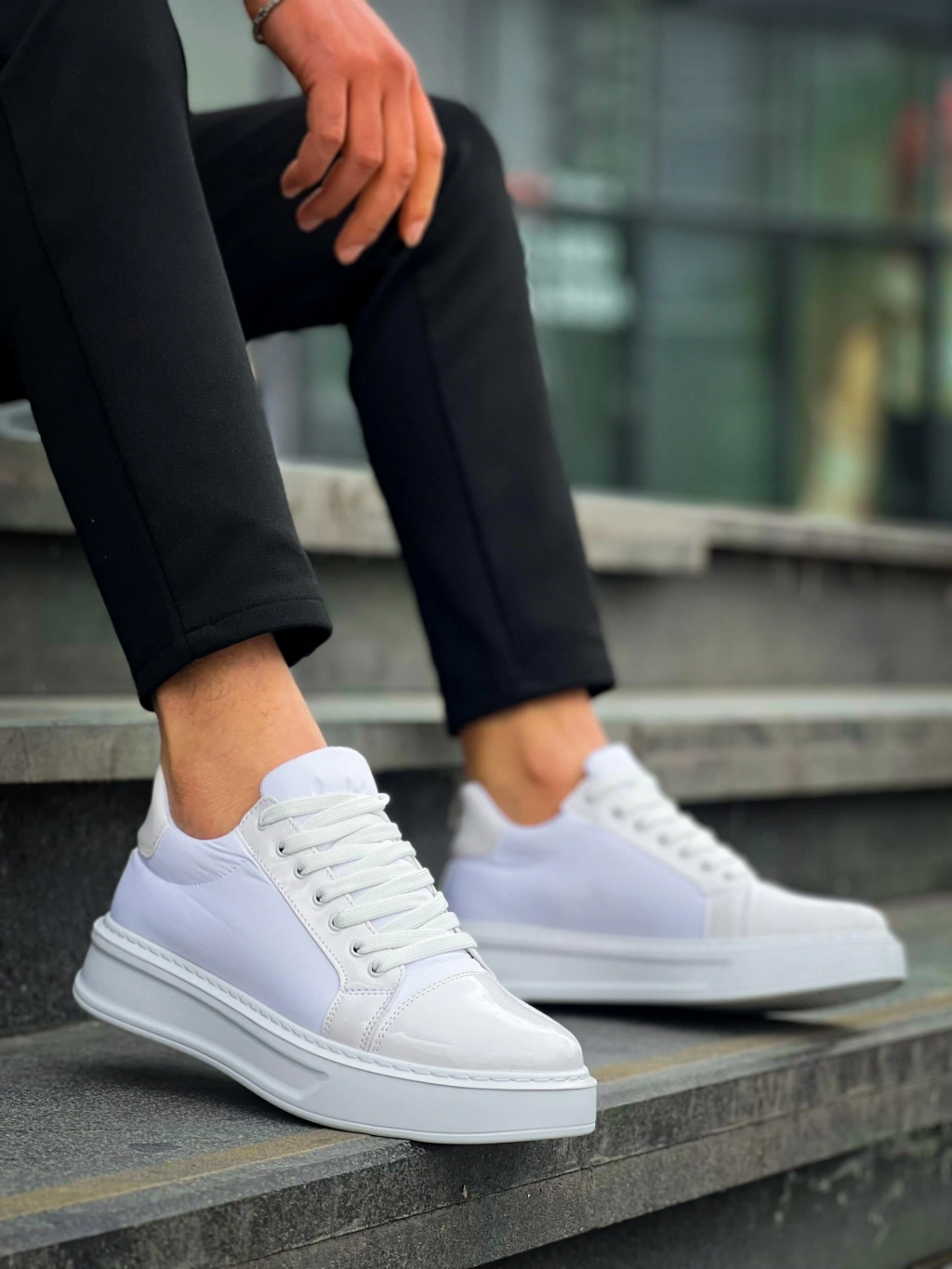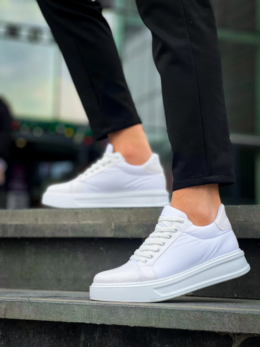 KB-X46 Kuback Beyaz Rugan Yüksek Beyaz Taban Günlük Spor Ayakkabı