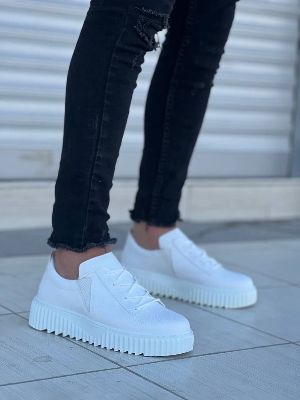 • KB-X502 Kuback Beyaz Cilt Yüksek Beyaz Taban Bağcık Detaylı Lastikli Günlük Erkek Ayakkabı