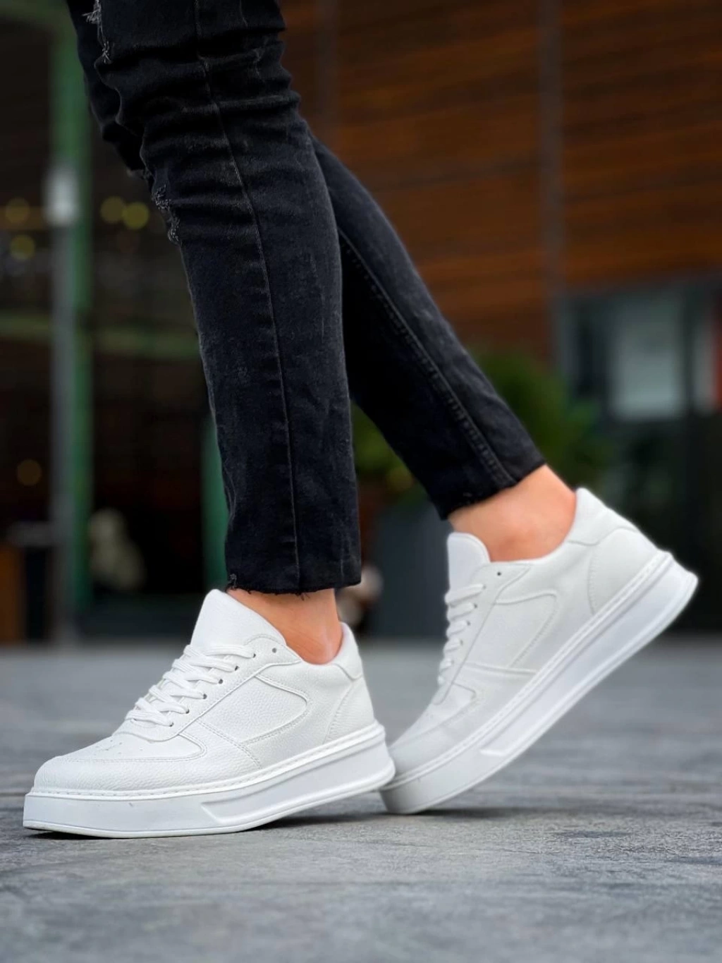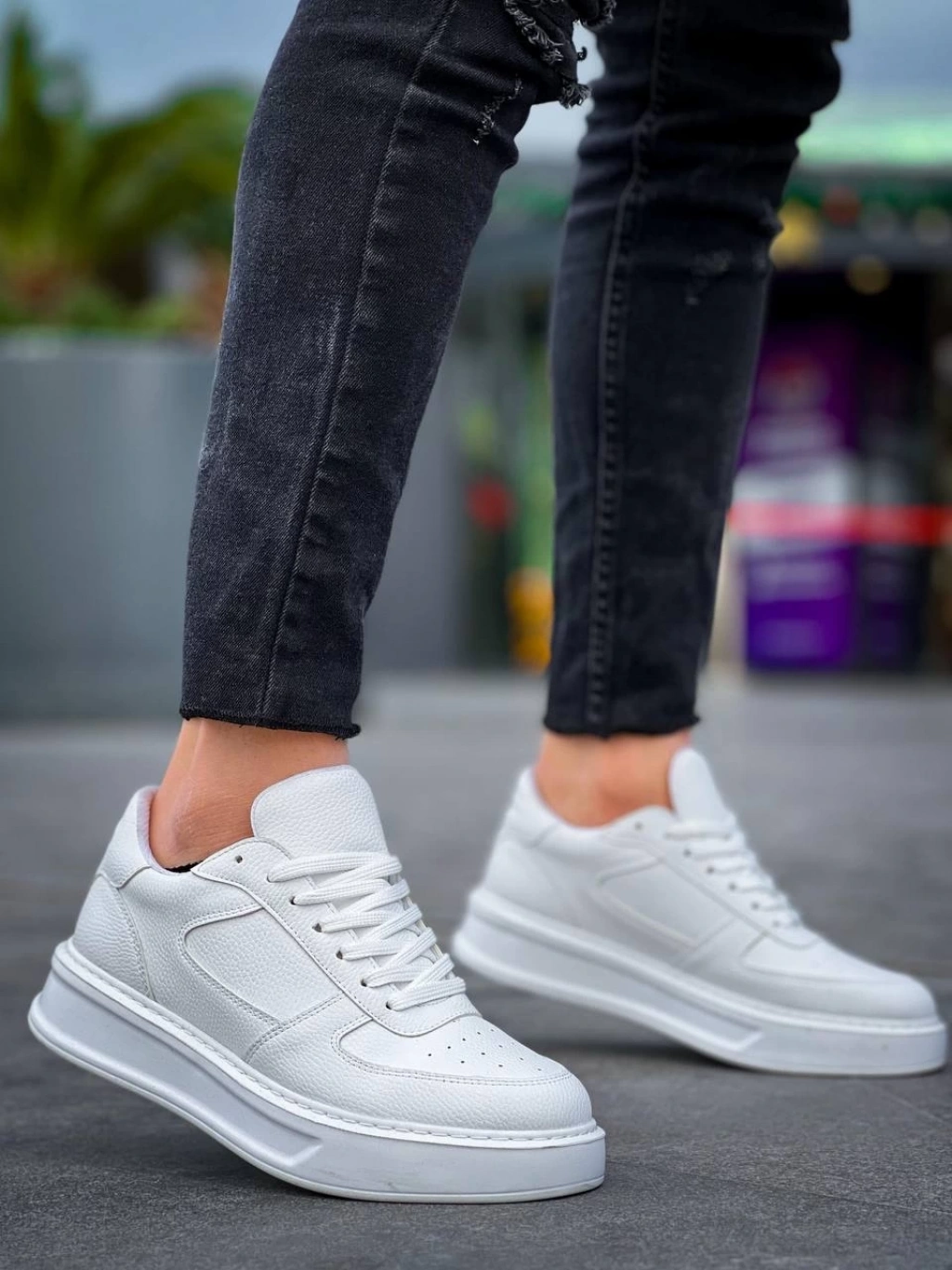 KB-X8 Kuback Beyaz Cilt Beyaz Yüksek Taban Günlük Spor Ayakkabı