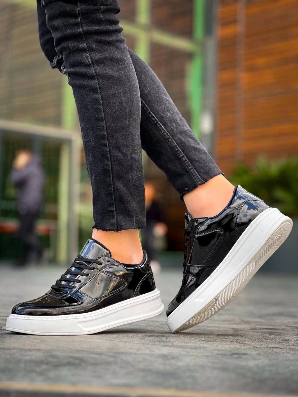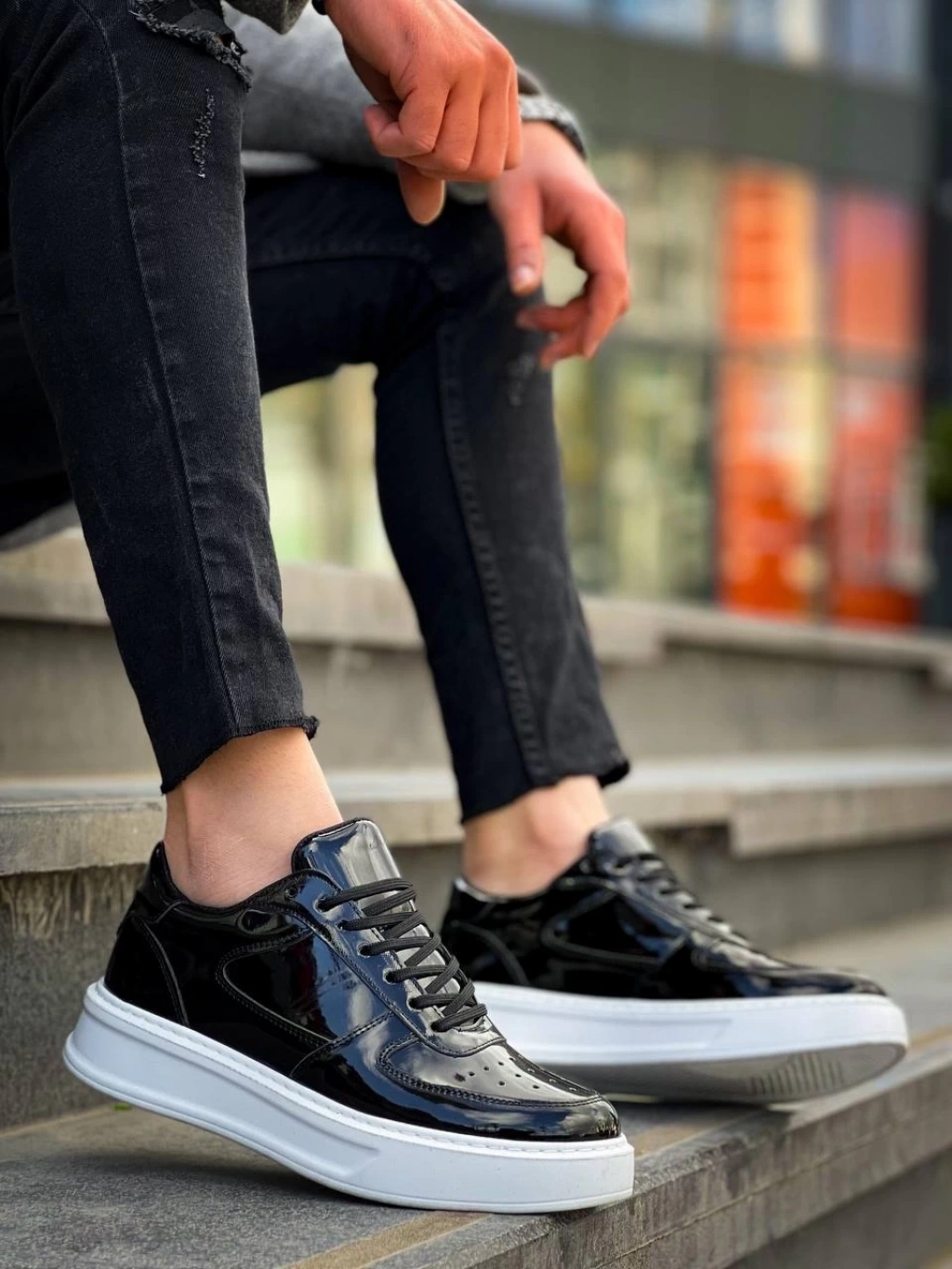 • KB-X8 Kuback Siyah Rugan Detaylı Beyaz Yüksek Taban Günlük Spor Ayakkabı