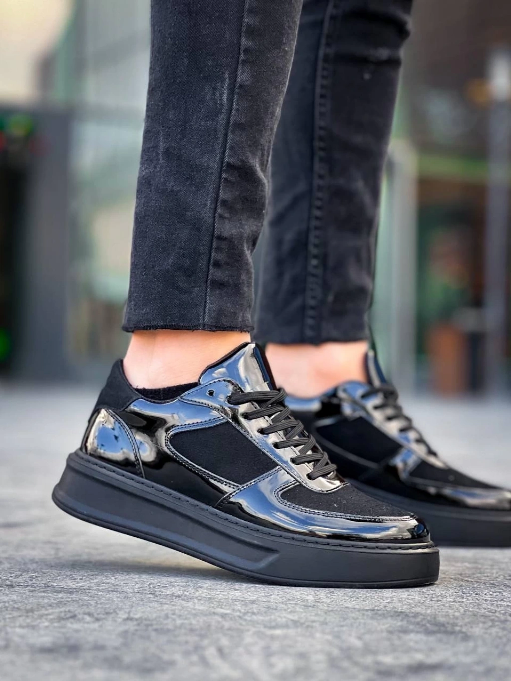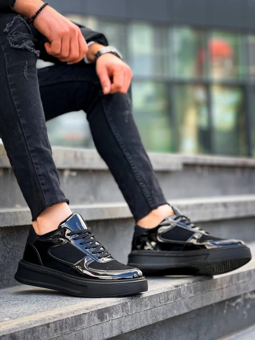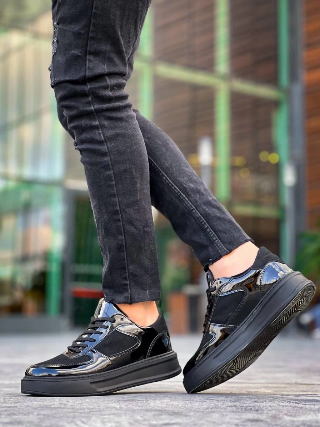• KB-X8 Kuback Siyah Rugan Yüksek Siyah Taban Günlük Spor Ayakkabı
