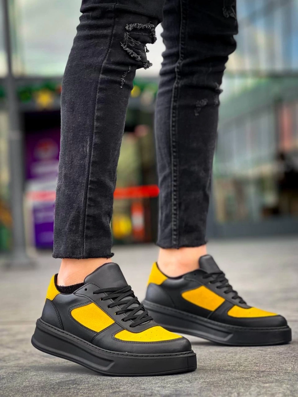 Kb-x8 Kuback Siyah Sarı Cilt Yüksek Taban Günlük Spor Ayakkabı