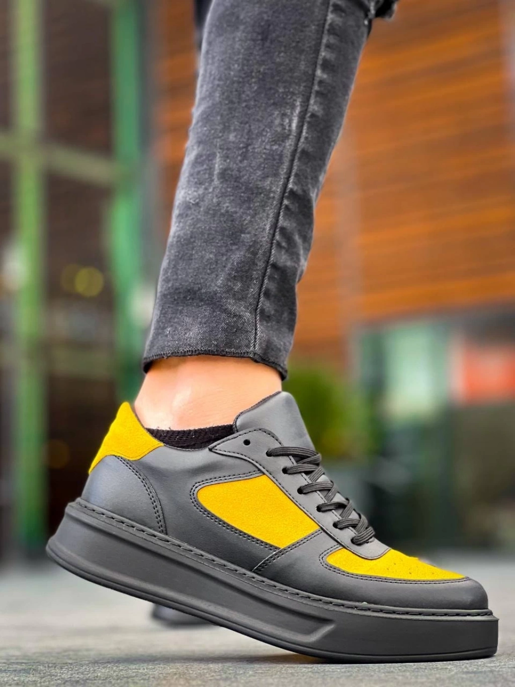 • KB-X8 Kuback Siyah Sarı Cilt Yüksek Taban Günlük Spor Ayakkabı