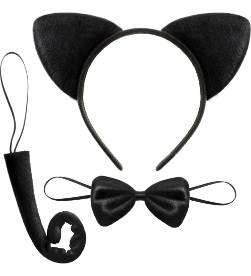 Kedi Kostüm Taç Kuyruk Papyon Seti 1 Adet