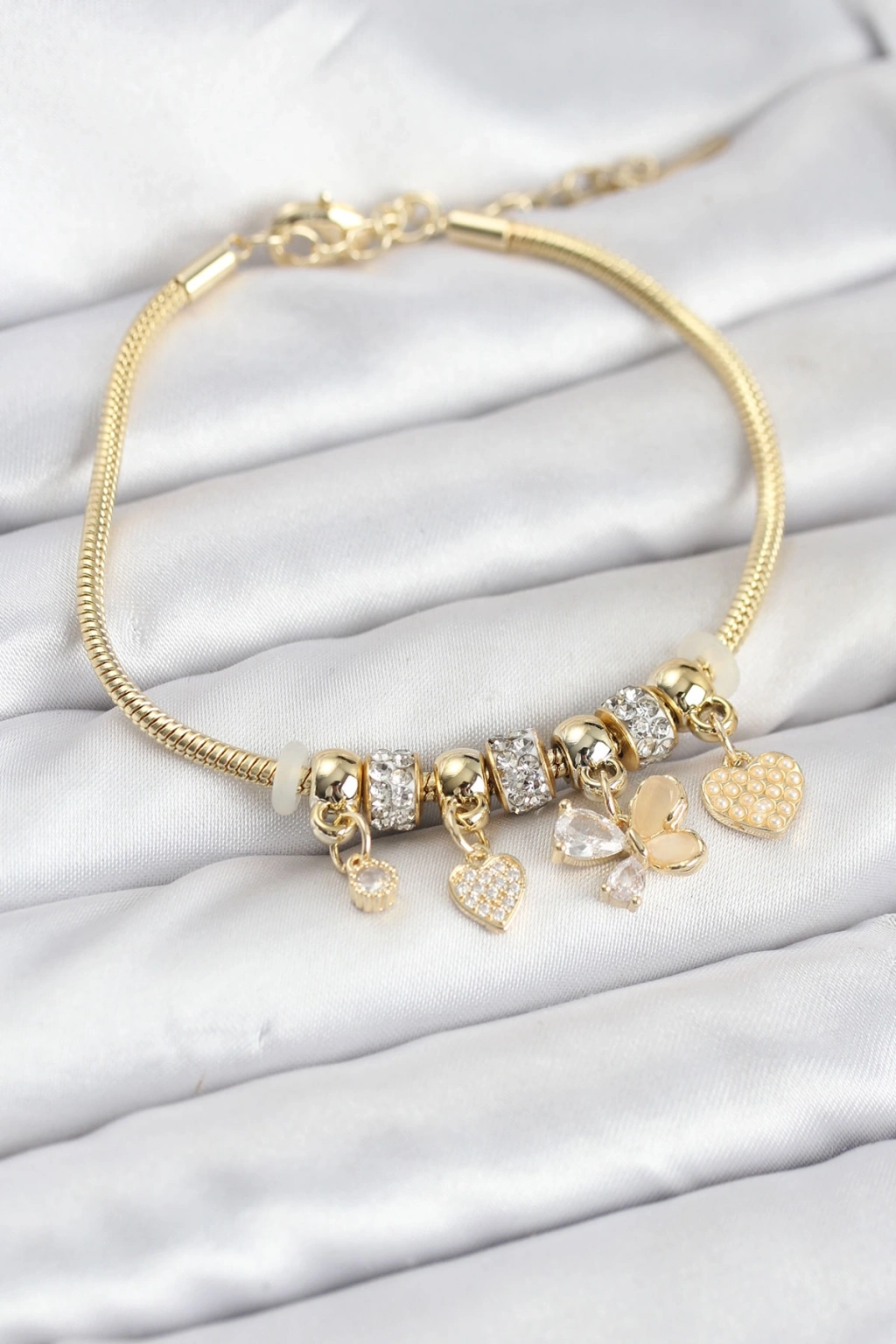 Kelebek Charmlı Gold Renk Kadın Bileklik