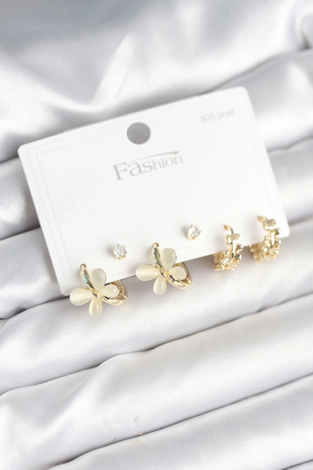 Kelebek Model Gold Renk Pirinç 925 Ayar Gümüş Çivili Kadın Küpe Seti