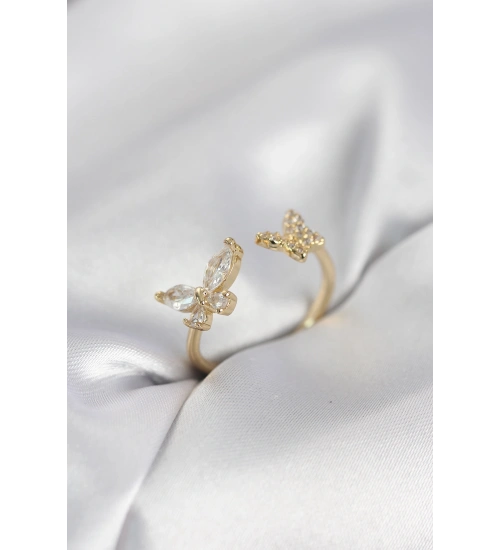 Kelebek Model Zirkon Taşlı Gold Renk Kadın Yüzük