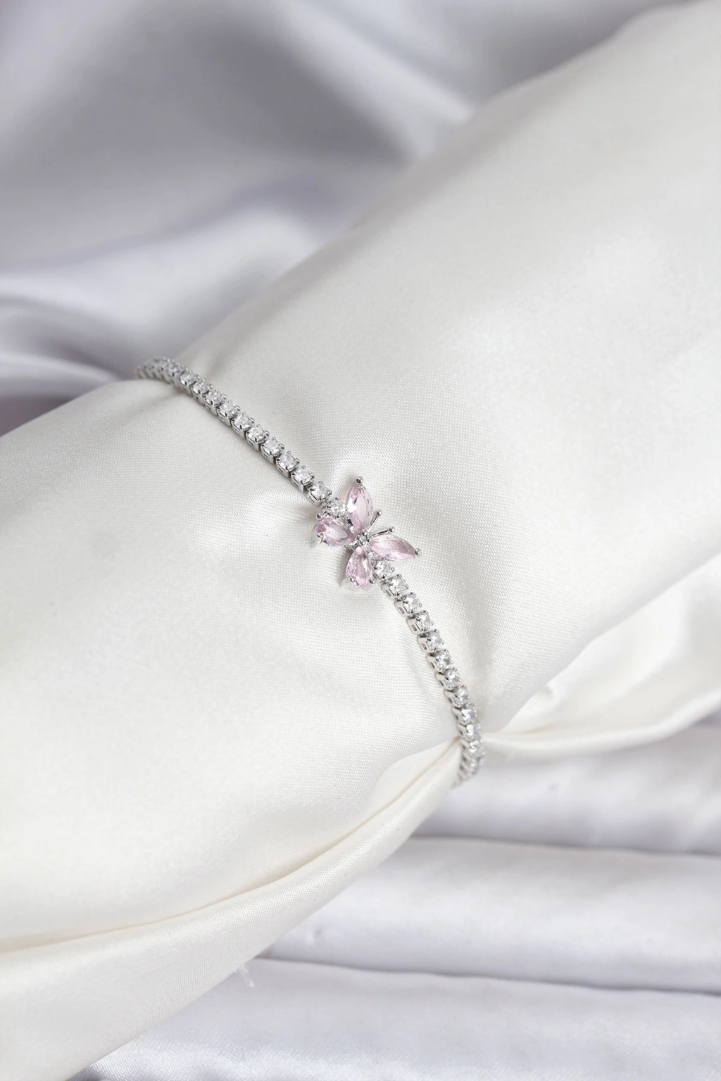 Kelebek Model Zirkon Taşlı Gümüş Renk Pirinç Su Yolu Kadın Bileklik