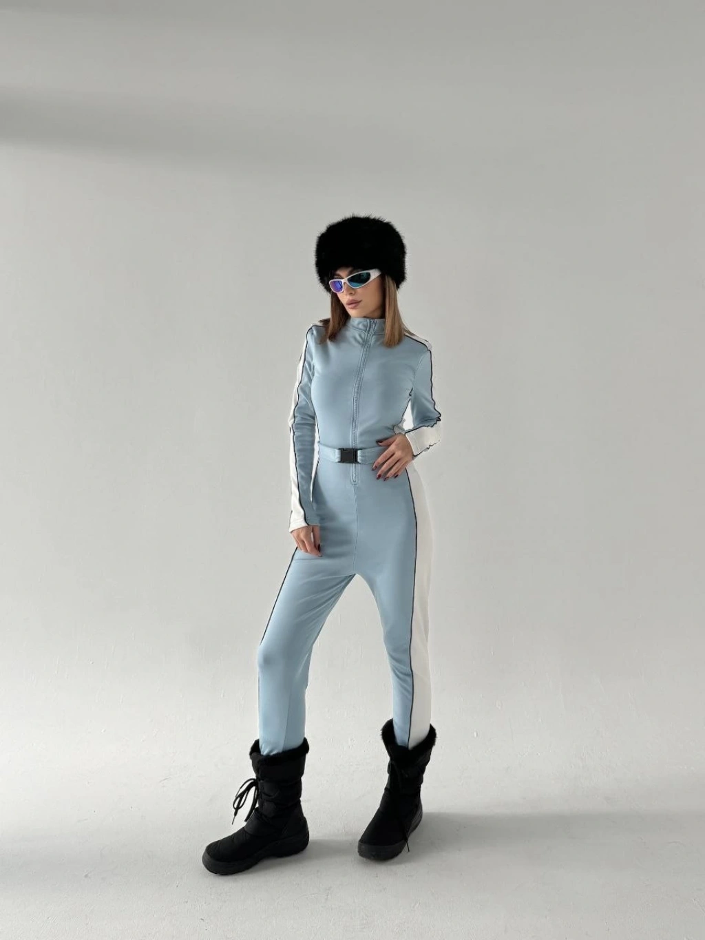 Kemer Detaylı Fermuarlı Tulum - Bebe Mavisi