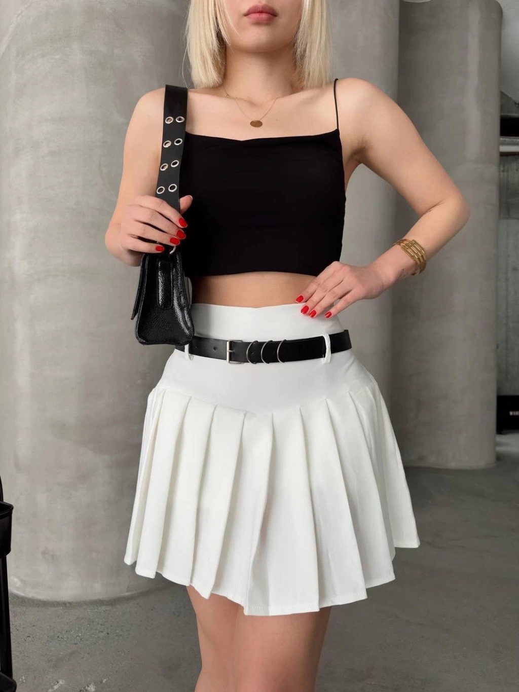 Kapaklı kaşe şort etek siyah beyaz kazayağı h261218
