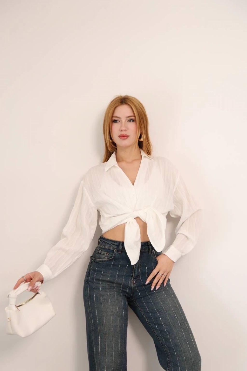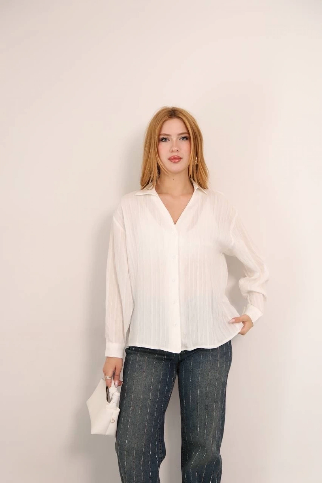 Tek cepli müslin gömlek beyaz pt