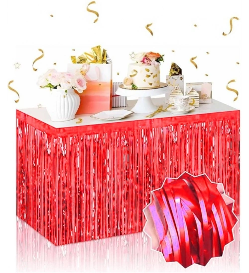 Kendinden Yapışkanlı Kırmızı Metalize Püsküllü Masa Eteği – 75 x 275 cm Parti Süslemesi