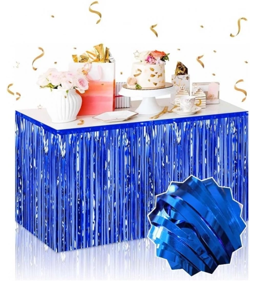 Kendinden Yapışkanlı Mavi Metalize Püsküllü Masa Eteği – 75 x 275 cm Parti Süslemesi