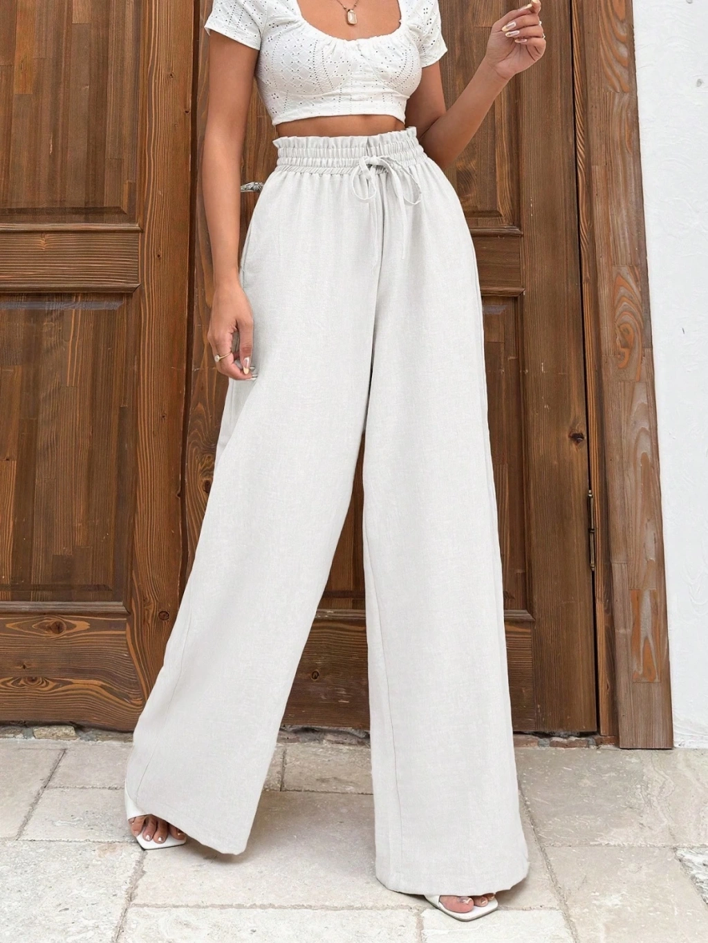Bu şık keten bağcıklı beyaz pantolonla tarzınızı tamamlayın. Hem şık hem de rahat kesimi ile günlük kullanıma uygun olan bu pantolon, yaz aylarında gardırobunuzun vazgeçilmezi olacak.