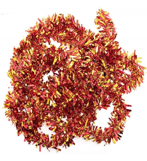 Kırmızı Altın Renk 6 cm Genişlik Garland Çift Renk Sim Süs 180 cm