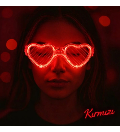 Kırmızı LED Işıklı Kalp Gözlük – 3 Modlu Parti