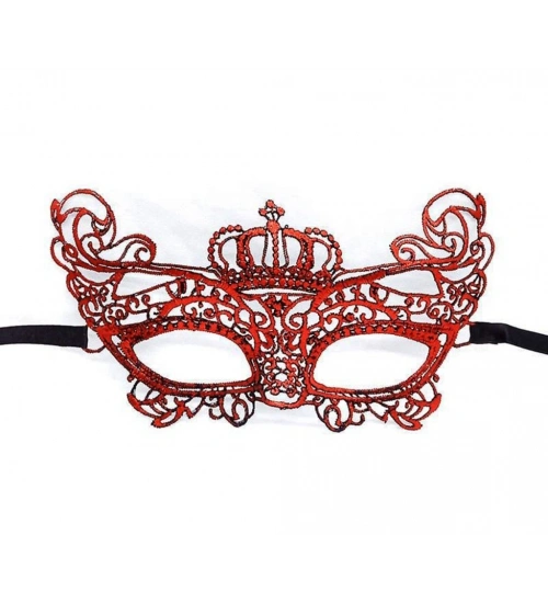 Kırmızı Renk Dantel Örgü İşlemeli Parti Maskesi Model 2
