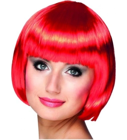 Kırmızı Renk Parti Peruğu Küt Saç