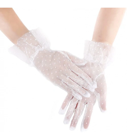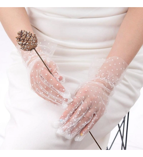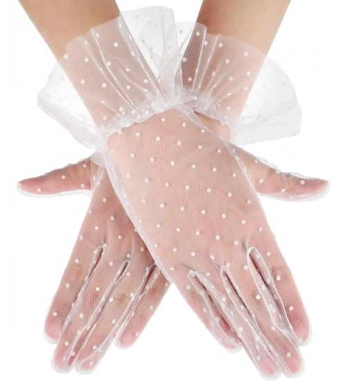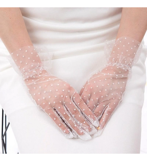 Kısa Boy Güpürlü Beyaz Puantiyeli Tül Eldiven Beyaz Renk