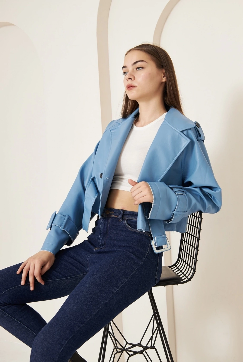 Astarlı kemerli pb deri ceket siyah onst