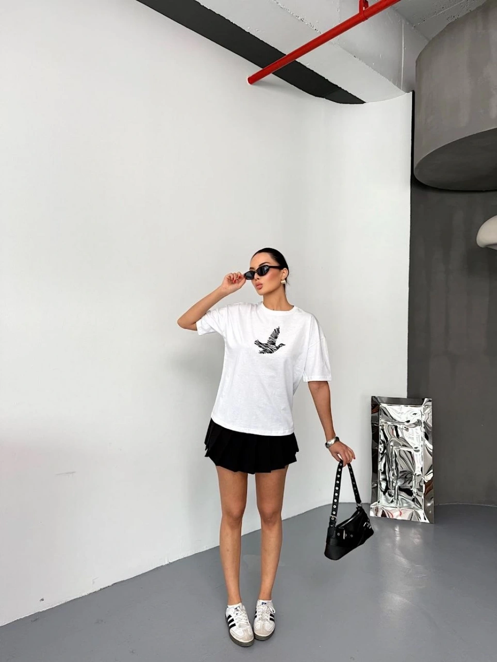 Kadın Asit Yıkamalı Oversize Tişört ön ve Arkası Baskılı %100 Pamuk Street Style T-Shirt - Beyaz