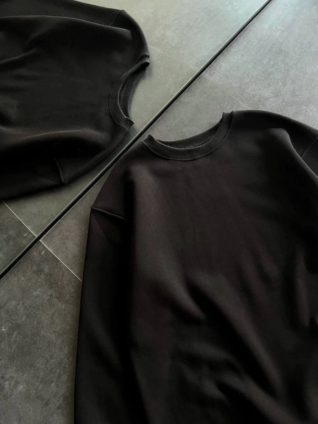Kadın Üç İplik Düz Bisiklet Yaka SweatShirt - Siyah