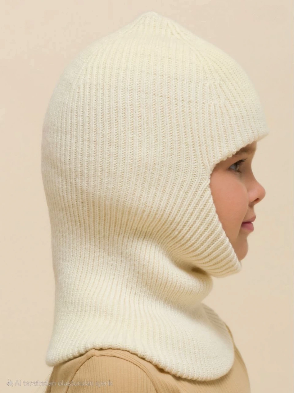 Kışlık Kar Maske Çocuk Triko Bere - Krem