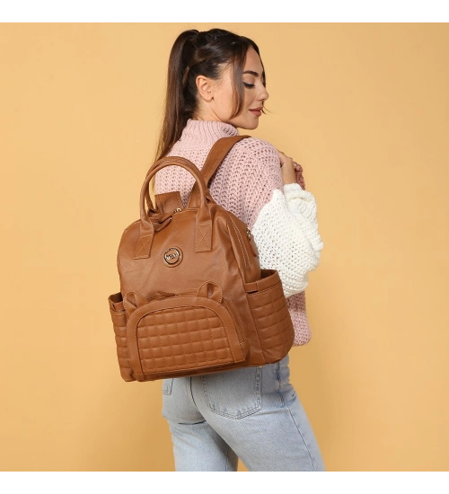 Kitty Deri Anne Bebek Bakım Sırt Çantası 7271 Taba