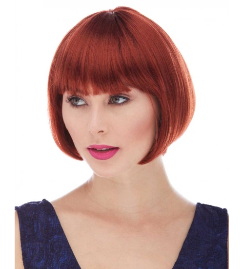 Kızıl Renk Düz Kesim Astarlı Küt Parti Peruğu